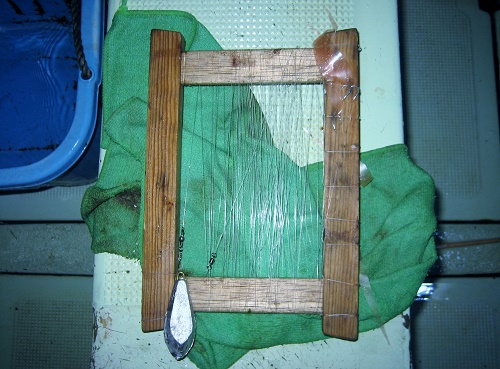 ・・・のが、この地方での釣り。10mを越える長いサビキ仕掛けで、針先にはビニールをチョンと掛けるだけ。